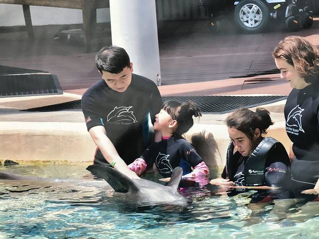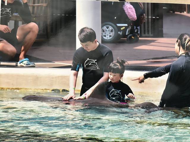 整个海豚探索差不多一个多小时,工作人员先是讲解一些动作要点,然后再示范和海豚互动,触摸打招呼等,很有意思。旁边一对老外姐妹,一位是残疾人,行动障碍很严重,工作人员也很nice得协助她们体验,真心不容易。