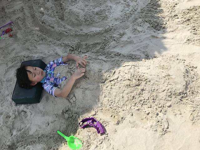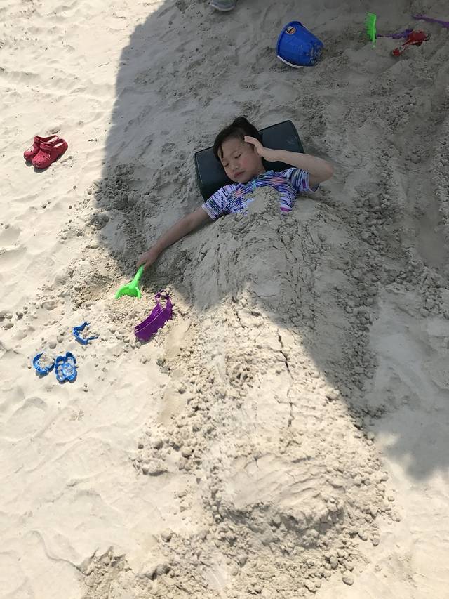 最后一天就窝在酒店里挖沙游泳,小妞晒得脸通红还是兴致勃勃,碰到一个也是上海过去玩的小朋友,和小妞同年同月,他俩很开心得一起玩,但是那个小朋友的妈妈在小朋友游泳的时候不停建议小朋友去沙滩玩,在沙滩玩的时候又一直催那个孩子快点走,下午定了包车要出去逛逛,小朋友只能恋恋不舍得走了。其实我觉得带孩子旅行,并不是景点越多越好,从孩子的角度来考虑,他们最喜欢的体验有可能就是在海滩边痛痛快快得玩一整天呢,而且孩子的教育中最可贵的就是专注力,玩也是学习的一种,我们作为大人,不应该那么傲慢得去打断他们。