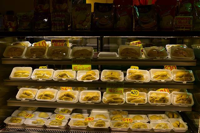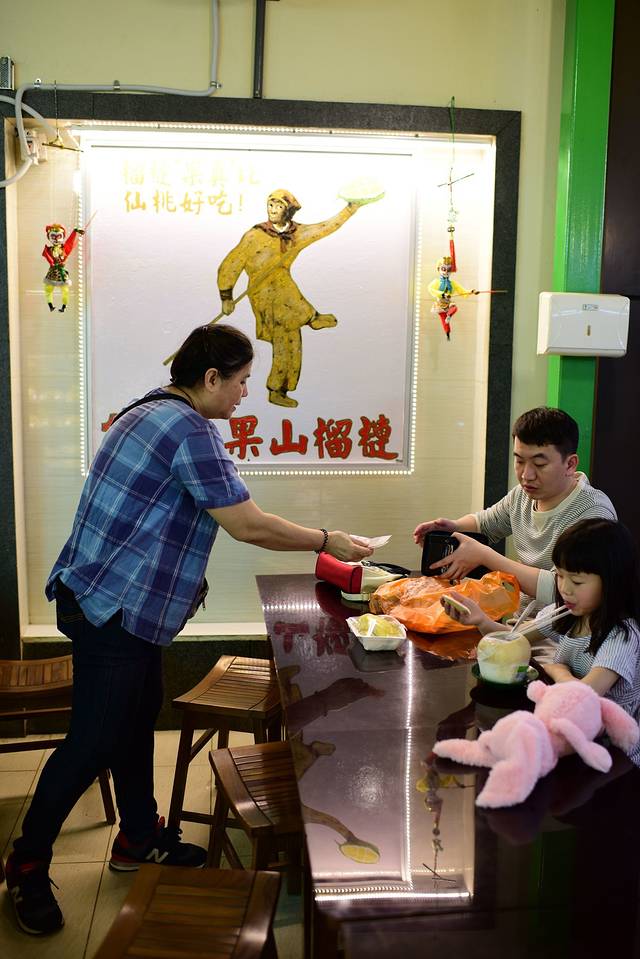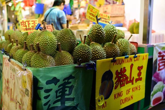 为了消消食我们就随意溜达,没想到溜达了一会儿就到了牛车水,新加坡城区果然小啊还被我们找到了花果山榴莲铺,看到各式猫山王,怎么能不坐下来大快朵颐
