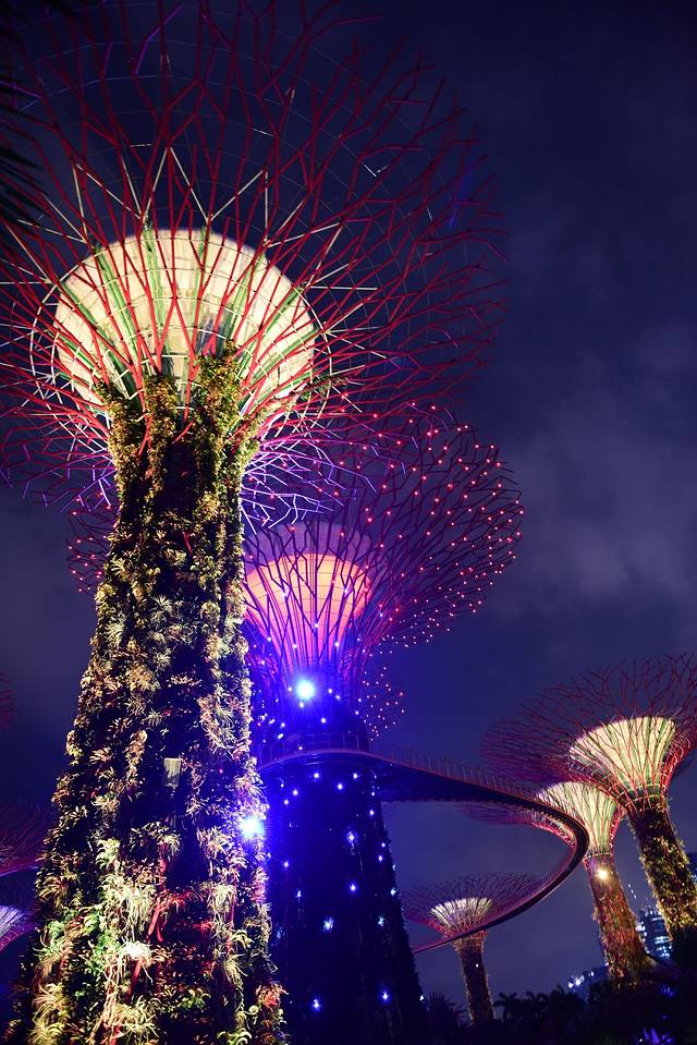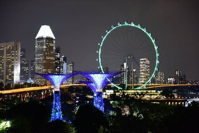 金沙旁边就是滨海湾花园,尽显新加坡的土豪底气啊,那么大的花园里都是奇花异草,像阿凡达世界里的巨树看上去雄伟艳丽,入夜灯光亮起,摩天轮金沙滨海湾构成了一片奇幻世界