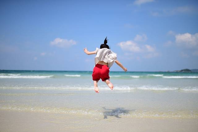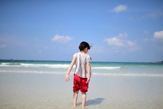 放下行李带小妞去海边玩,民丹的沙还是很不错的,又白又细,小朋友踏浪而行,跳得欢脱得不得了