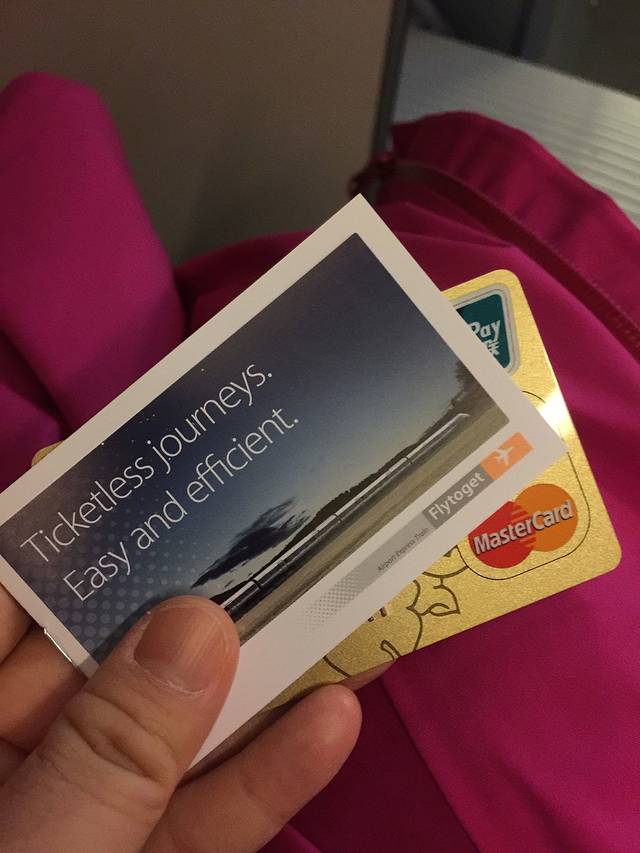 从酒店去机场还是搭乘机场快线,买票的机器很先进,刷一下信用卡就行,不用出票,车票信息直接记录在信用卡上,高效环保。上了车漂亮的列车员看到小妞马上送来了小礼物,可以挂脖子上的袋子里是彩笔和贴纸涂色书,做工精美,用的材料野狠环保,简直不能更贴心。