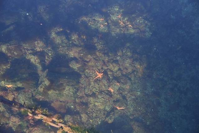 小镇很迷你,有小小的火车博物馆,还有各种山妖的雕像,再往上还有条小徒步道,码头边的水清得令人发指,有好多好多海星在慢悠悠得移动,小妞在码头驻足逗留了好久好久。