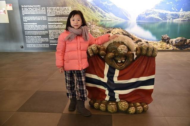 罗弗顿水族馆就是这个白白的建筑,也很小,但是也很有意思,有活的三文鱼,旁边的池子里有胖胖的水獭和海狮游来游去,超级可爱,完全不怕人,游过来的时候还把肚皮翻过来给你看,当然还可以摸海星什么的,这里参观的人很少,小孩子可以玩很久,其实我觉得对于孩子来说,不一定要去多有名多大的地方玩,有的时候一个小小的室外桃源的水族馆就可以让她开心得玩很久,水族馆外面还有一个水泥的攀爬架,挪威很多地方都有大小不一的攀爬架,大概这里的人都比较喜欢hiking吧,而且挪威多山,注重从小培养孩子的爬山能力。