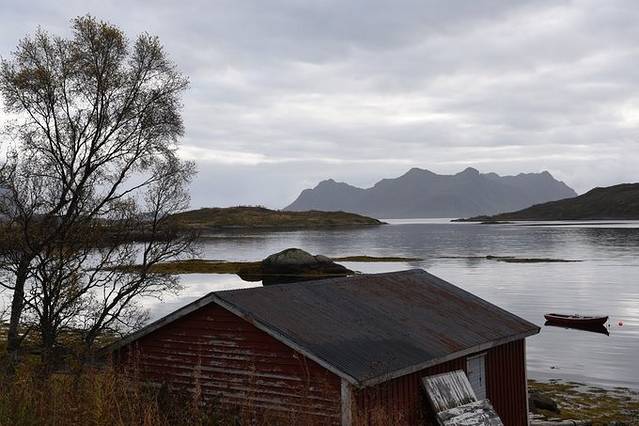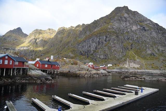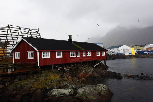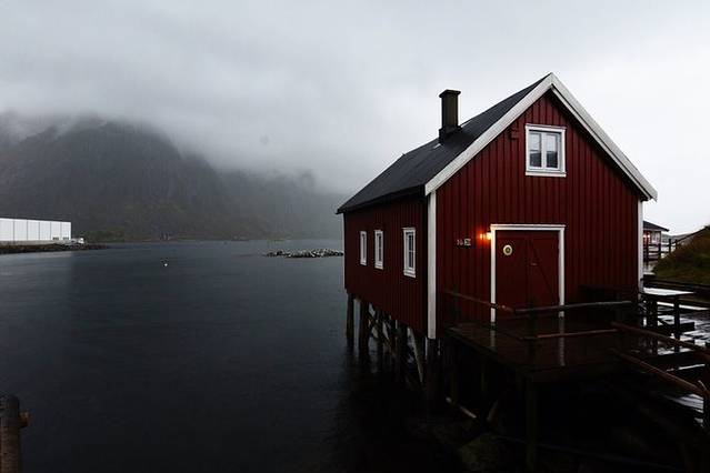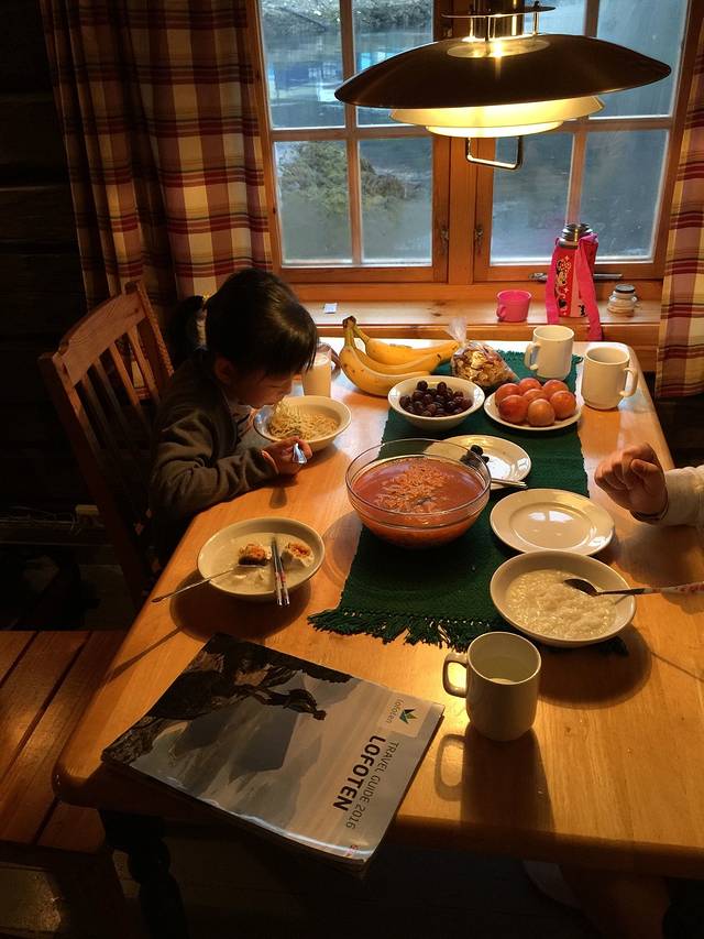 罗弗顿第一站是svinøya rorbuer,这是由很多个靠海小木屋组成的酒店,小木屋里面很温馨,我们定的是四人木屋,很宽敞,从木屋窗子往外看旁边的海,有一块礁石上挤满了海鸟,可惜到达那天下雨,就有北欧阴沉清冷的感觉了