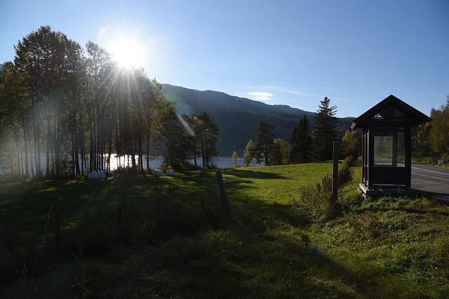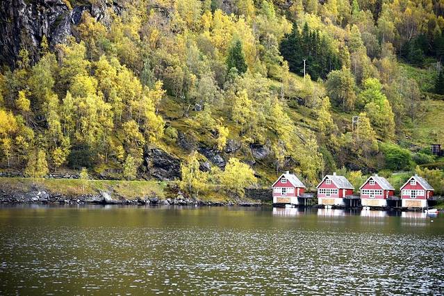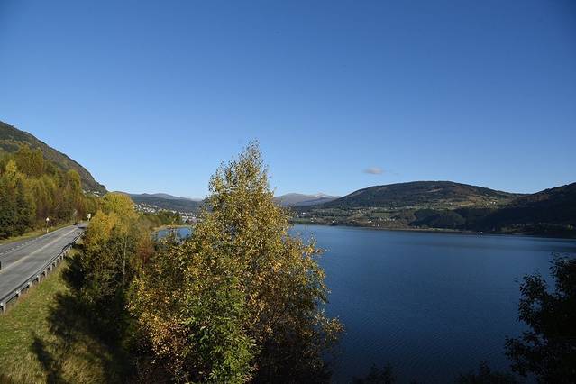 挪威多山,所以也有很多小森林,相信大家最早听说挪威都来自于《挪威的森林》,深秋时节,湖光山色,层林尽染,美不胜收,一路上的风景美得象名信片一样。