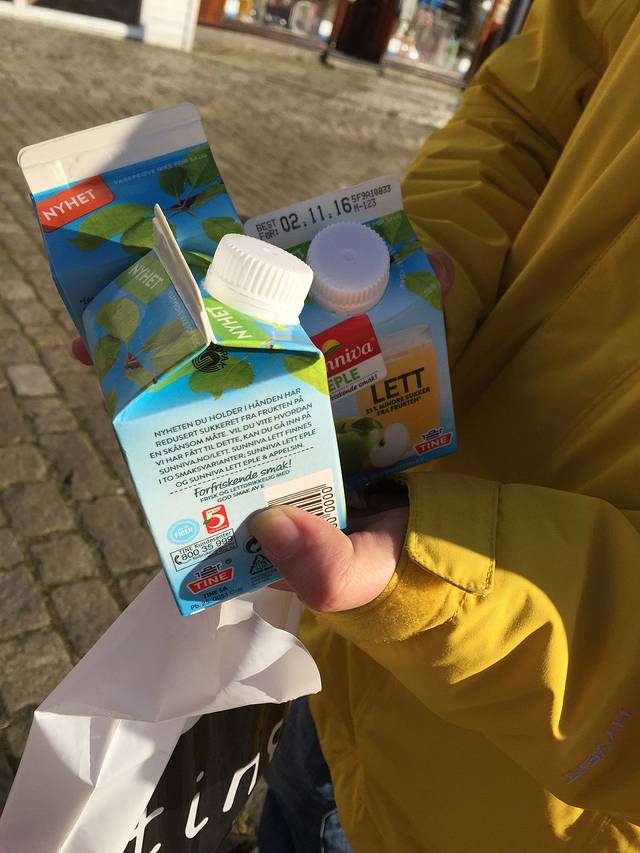 在奥斯陆被塞了免费牛奶,回到卑尔根又被几位美眉塞了一人一罐免费果汁,这福利。。。