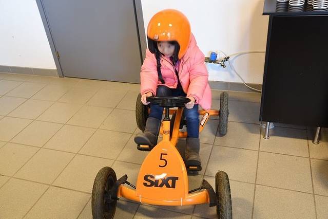 租车公司办公室还有部小型卡丁车,小妞玩得好开心。