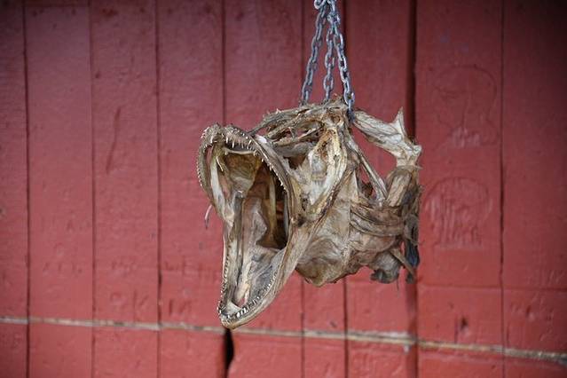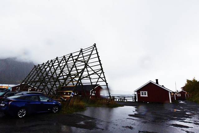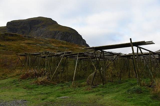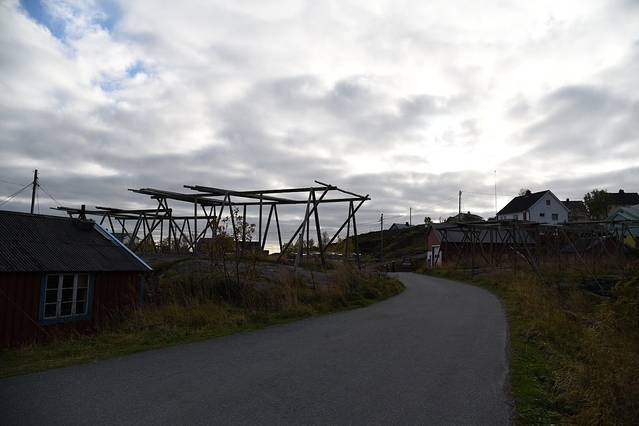 这里到处都是晾鳕鱼的架子,每年冬天这里的渔民都会在这里晾鳕鱼干,所以鳕鱼头骨也到处都是