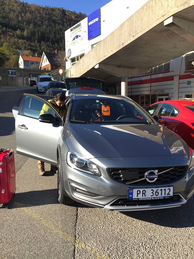 因为卑尔根去弗洛姆的火车取消,所以后来我们又临时租了车子往返卑尔根和弗洛姆,租租车app上操作很方便,预定的是golf,后来免费升级了volvo,车型很新,就是一开始有点抖豁,因为是在sixt租的,我看网上很多评价说这家租车公司会乱扣钱什么的,但其实还挺好的,事先跟我说清楚因为有过路费,会事后给我帐单在信用卡的预授权里扣,事实证明并没有多扣乱收费的情况。
