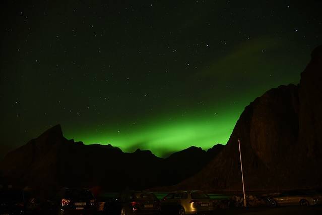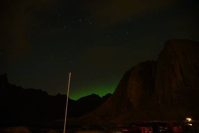 到达罗弗顿的时候下大雨,感到很遗憾觉得这次可能运气没那么好见不到极光,毕竟很多人去了很多次都没见到过,但是随着天气慢慢变晴,晚上欧若拉突然就降临了,给了我们大大的惊喜,看来运气还是很不错的