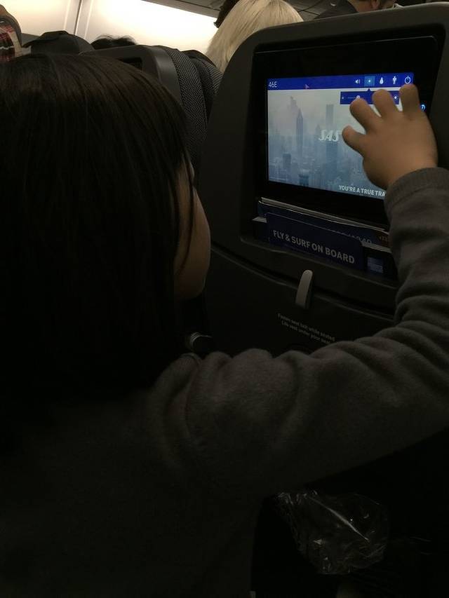 之前提到过北欧国家对于带小孩的乘客一般都是优先对待的,我们办登机的时候被安排到了经济舱的第一排,前面空间甚至比商务舱也大好多,机舱的娱乐系统也很新,一路上看看电影玩玩游戏倒也不无聊。