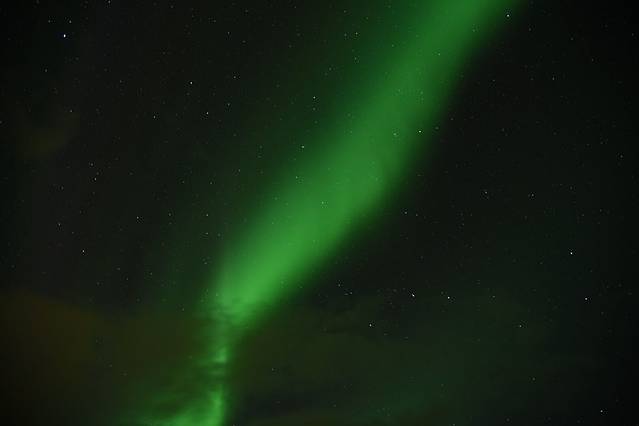 看着天上是不是飘过的云,心想着估计也就这样了,不过反正前两晚已经看到那么赞的极光,已经很满足了,而且虽然极光没有爆发,但是云彩和点点繁星也很美啊。
