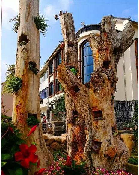 门口这堆树桩,老板说叫它“多肉森林”,这是枯木逢春的最佳表达,多肉在里面上蹿下跳的样子,是生机最好的表现。