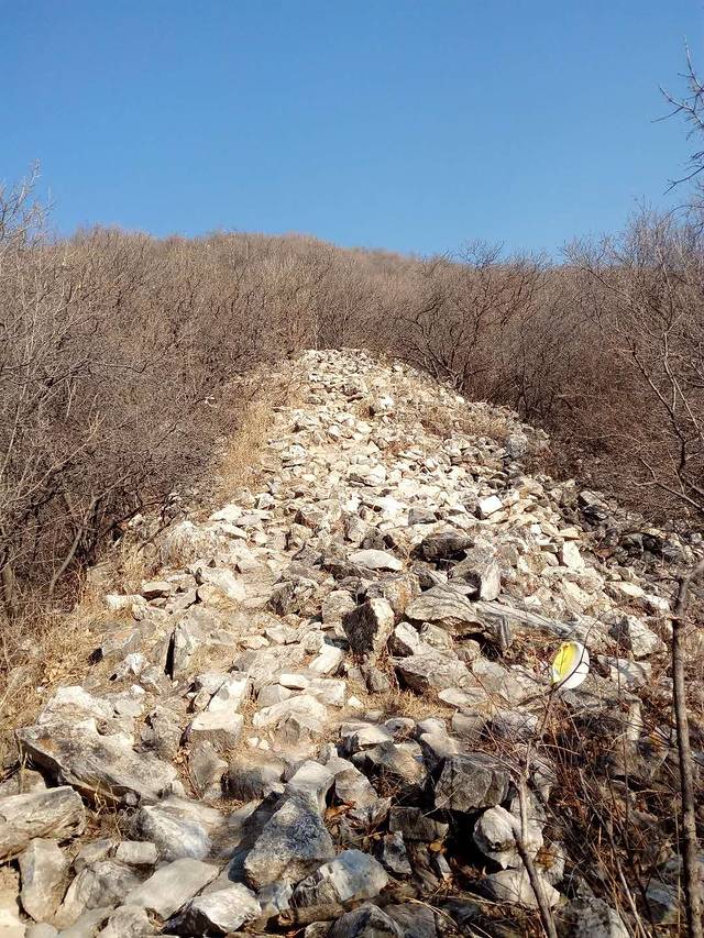 爬野山,有前人踩过的小路,不费劲,用时1个半钟头,见到长城基石墙,上图这个牌是鹰飞倒仰,先用在这,表示爬到长城。