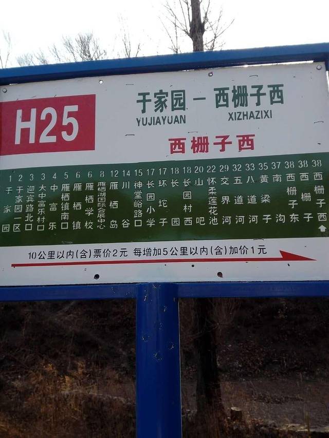 我是下山到四栅子村,乘坐H25怀柔公交车