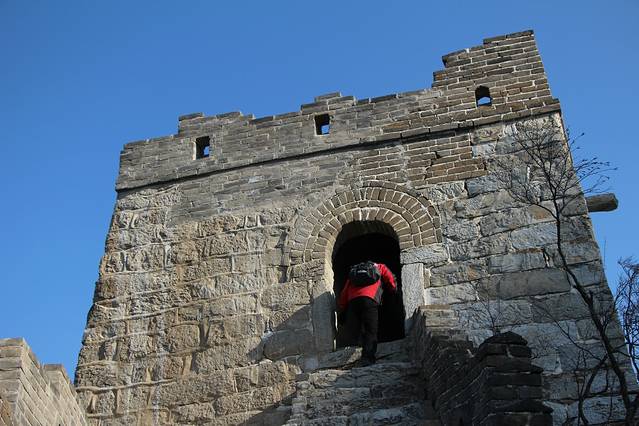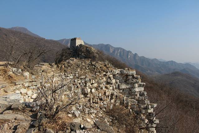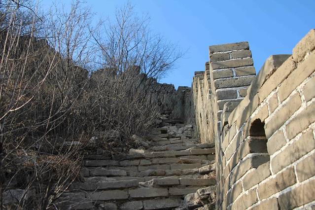 由于长城在北京远郊山巅,一次仔细游览一个长城,我不想走马观花,为奔长城而疾走。在面对每一段长城时,我愿意静听风声,细品长城,看长城每一个滴滴点点。发现它的古迹,接纳它人工修缮的崭新面貌,有不完美,或遇见更完美角度,拍摄长城。