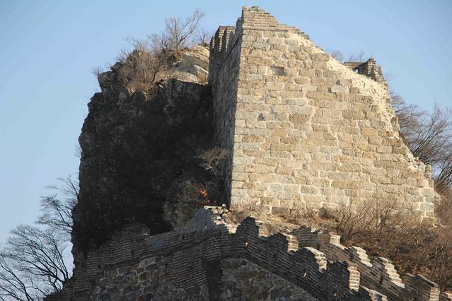 九眼楼前端,有个附楼。穿树林突然看见长城,眼睛目不暇接。只顾兴奋,没单独拍照附楼。下面是同行朋友拍照的长城(我怎么没看到这)。