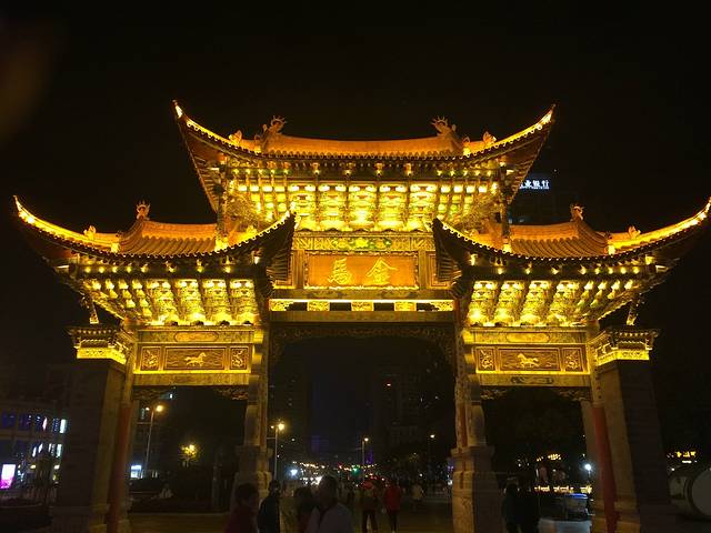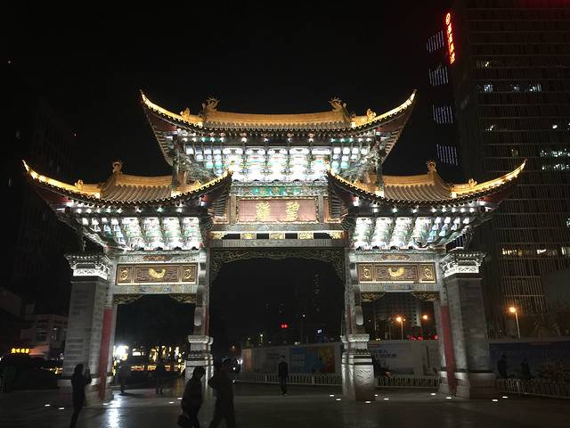 我们川航下午两点 左右到达昆明长水机场,乘坐机场公交车919路每人13元到达昆明火车站,因为我们订的当晚的火车票去大理,所以就将行李全部寄存在火车站,然后在火车站坐公交到附近最近的金马碧鸡坊,因为极限挑战而火起来的,其实是个广场,我们到的时候时间还早,也没有开灯,所以就感觉没什么特色,但是吃过晚饭后出来的夜景还是不错的,应为没有想吃米线,所以在附近搜了一家当地火爆的老菜馆。年轮菜馆,就在金马碧鸡广场的斜对面,过马路即是。味道可以,汽锅鸡很正宗,三个人100元。