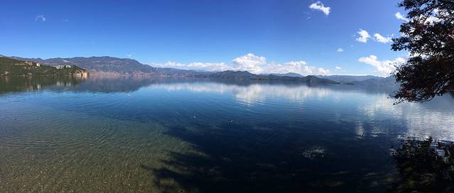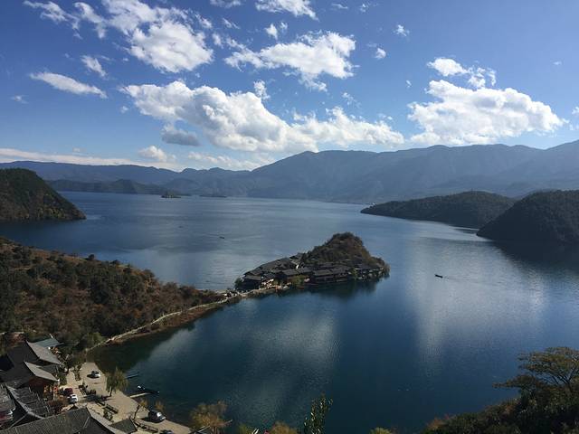 泸沽湖是一般四川省 一半云南省 我们先游览的是四川省的部分 明天去的是云南省的部分 大部分的景色 都是在 四川省的 部分了