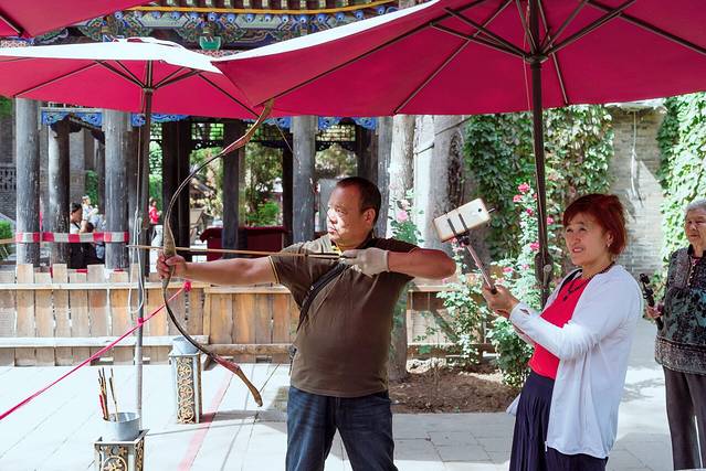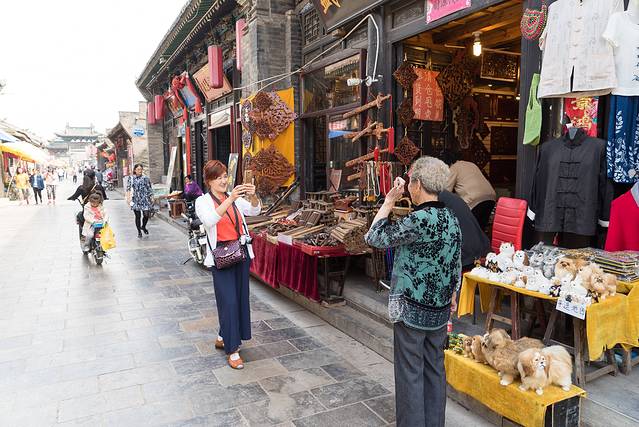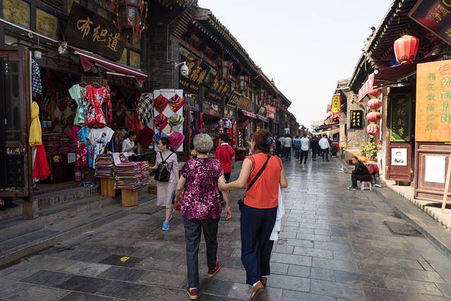 整个古城的街道布局为“土”字形,游玩时通常从下西门进城,沿西大街走到“中国现代银行的鼻祖”日升昌票号,在这里不仅可以了解古代银行业的发展史,还可以让长袍马褂的老掌柜用最早的汇票方式给你写张汇票,特别有历史感。