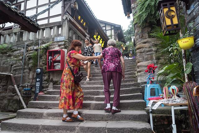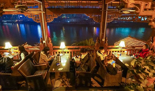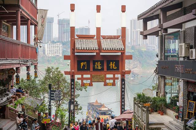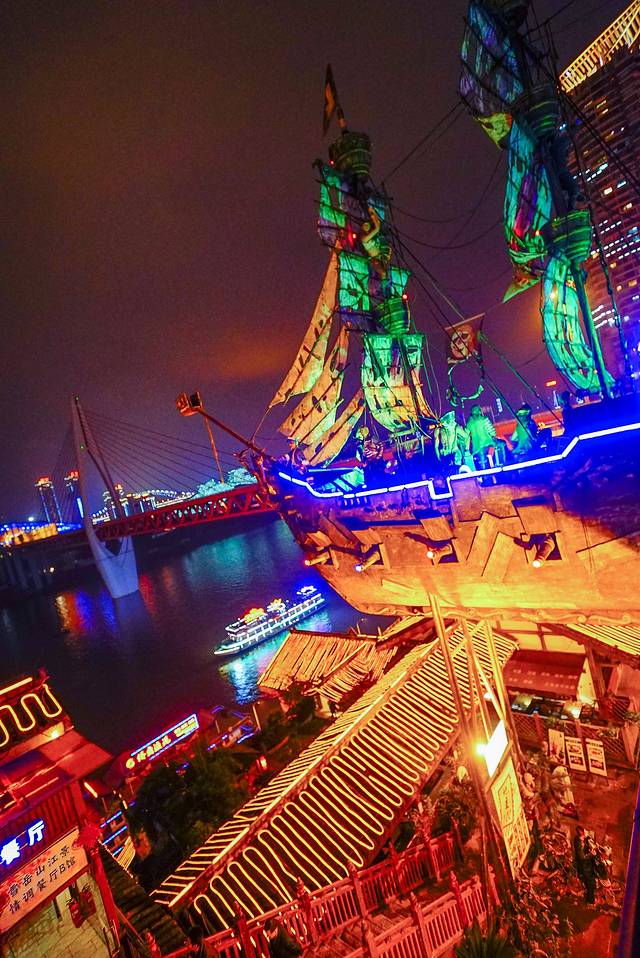 千与千寻的原型,一直以为台湾九份是最贴切的,当站立洪崖洞,夜色落幕,华灯初上,那些光亮指引着我们。洪崖洞有11层,每层都有特色商家。爱蹦哒的孩纸,可以一层一层闲逛,只是电梯实在拥挤。洪崖洞夜景不错,落座酒吧,沿江边瞭望,看船来船往,看各地游客,天南地北。时间会沉寂许多。