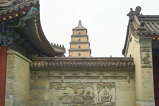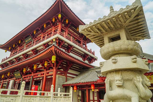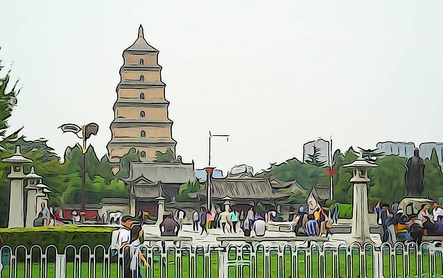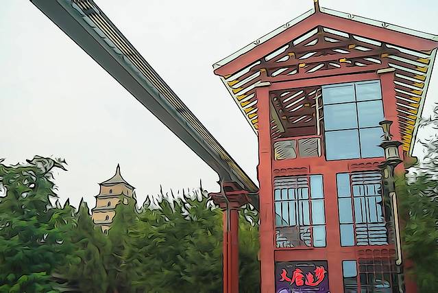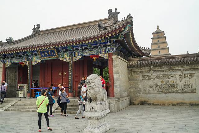 大慈恩寺是唐高宗为纪念母亲长孙氏所建,故名大慈恩寺,是中国佛教唯识宗的祖庭,唐长安三大译经场之一,迄今已历1300余年。旁边有很多商场、美食街,是古典与现代结合比较好的典范。