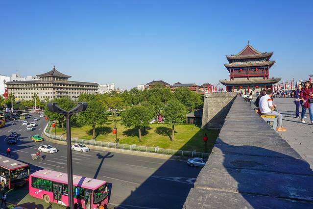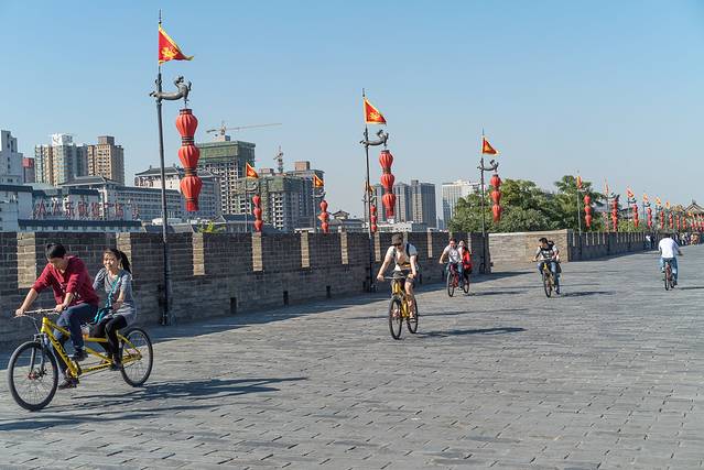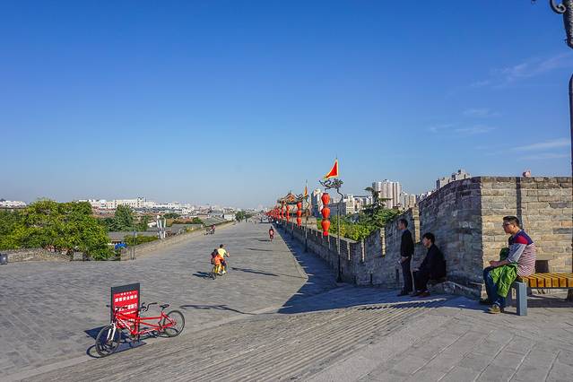 在六百年历史的古城墙上,骑车漫步,俯瞰十三朝古都。
