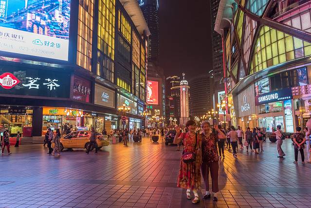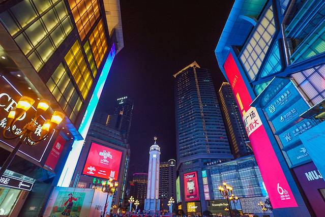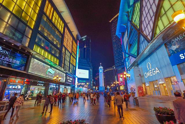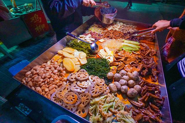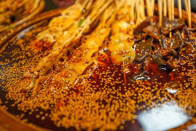 解放碑商圈总是有很多当地小吃,辣的爽翻天。