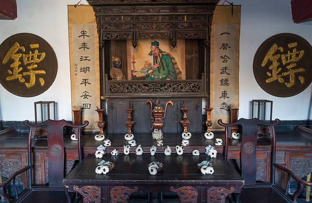 城隍庙的总体布局的特色还体现在“庙中庙”的配置上,灶君庙和财神庙分置在城隍殿东、西两侧,组合成“诸神共居一庙,联袂同受香火”的奇特景致。