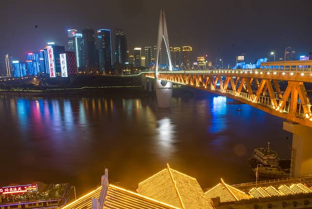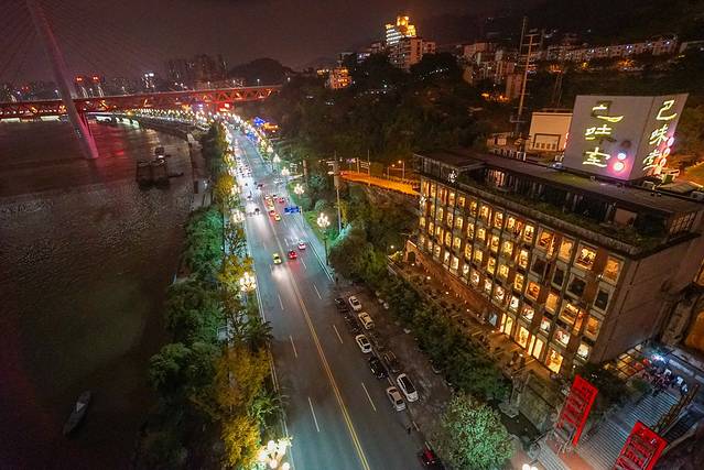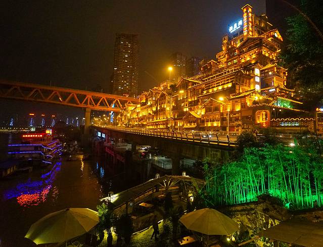 这灯火辉煌的渝中半岛、璀璨夺目的滨江路、波光粼粼的长江水、流光溢彩的跨江大桥,群彩交相辉映。 如果你在蒙蒙细雨之夜,乘坐长江索道看夜景,便可远观到这水墨淡彩的《巴山夜雨图》,巴山雨态,水墨中的城市山林。