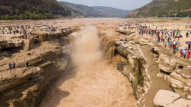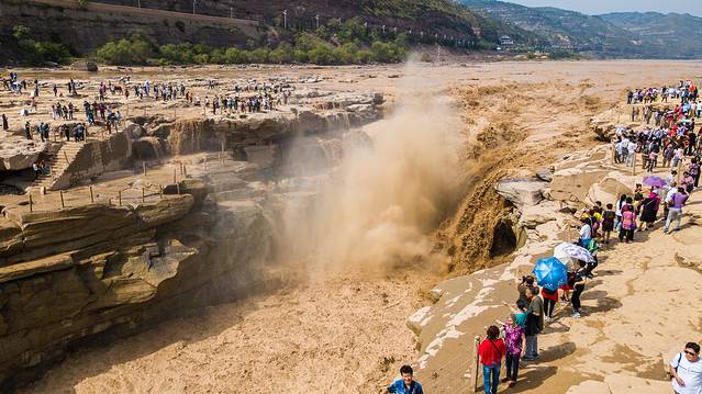 站在河边观瀑,会不由自主的唱起“风在吼,马在叫,黄河在咆哮”这威武雄壮的歌声。