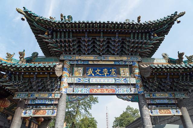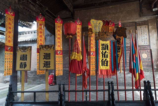 另外,平遥城隍庙最大的特色是建筑结构与琉璃艺术,整座庙区内,殿宇、廊庑、楼阁、坊、台形制多样,结构精妙,而满布殿宇屋顶的琉璃更叫人称奇、心动,蓝、绿为主黄色相间组成的青冷色调装出神秘的意境,其仙人,走兽、龙吻背刹,造型精美色泽如初,是清代琉璃工艺的杰出范例。