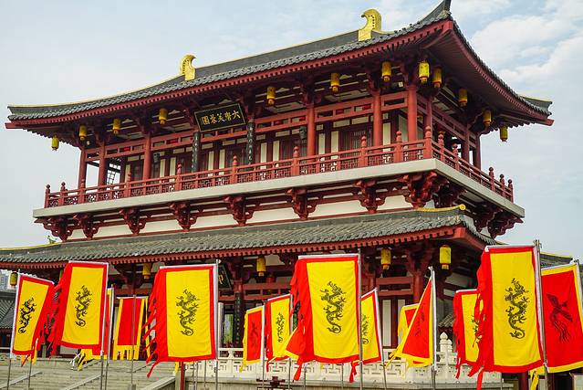 这里的建筑群充满了规划的美感,有一种将大唐盛世原景重现的感觉,停好车,我们要好好感受一番。