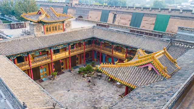 临走前的一组平遥航拍图:城墙边古色古香,充满诗情画意的院落就是我住的驿云客栈。