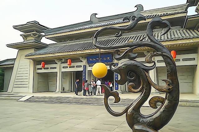 博物馆坐西朝东,分三进院落,由外及里,依次增高,隐示着“步步登高”的吉祥之意。