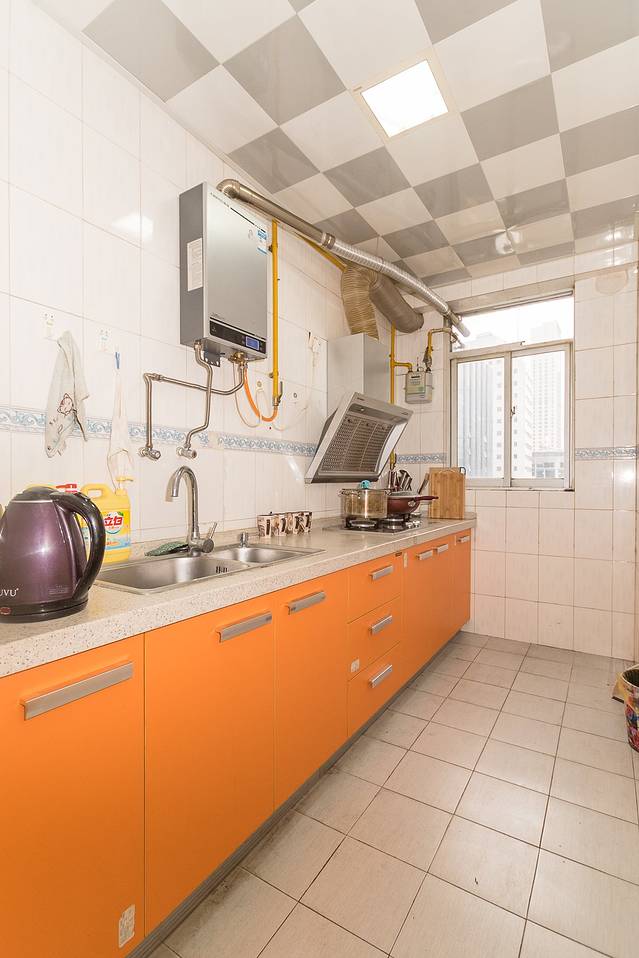 不但风格可爱,色彩亮丽,还有一间充满生活气息的厨房,里面锅碗瓢盆,碗筷调料十分齐全,想吃啥超市买来直接就可以下锅了。