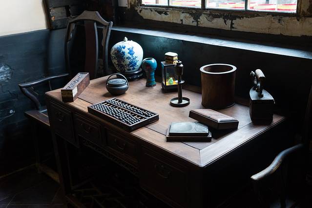 从斑驳的课桌可以想象出拿着教棒一板一眼的先生,和一群摇头晃脑背书的学生。浓浓的书香气息,走进这里就觉得心很静,很适合学习。