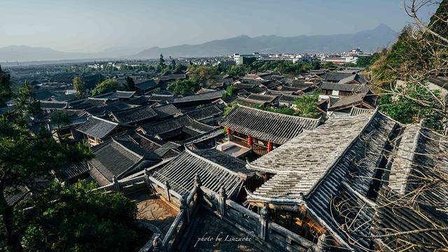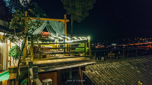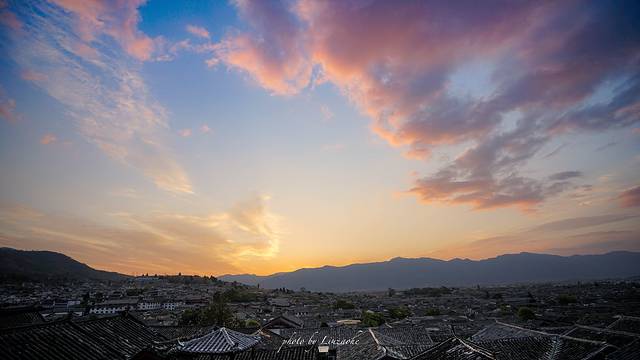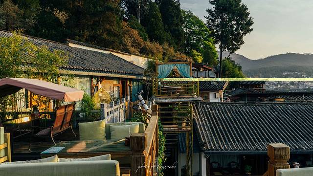 我订的酒店坐落在狮子山上,叫阅古楼,就在距离万古楼不远的地方,让我选择这个酒店最无法抗拒的理由就是,他有一览丽江的观景台,这里看夜景,看日落真的太美了