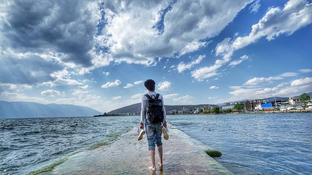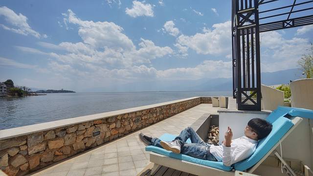 海潮与风,即使不能撼天震地,却为无边的静加注了荒情和野趣,最令人神往的,就是一杯普洱,倚在阳台上,听风吟,看云涌,赏洱海,忆从前。