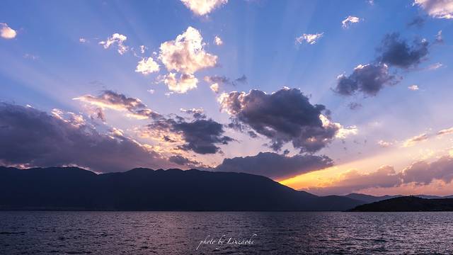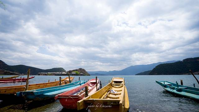 泸沽湖的水似镜面般平静,泸沽湖的云如万马般奔腾,虽然路上车马劳顿,但是看到泸沽湖的那一刻,感觉一切都释怀了,心灵不禁被她的神圣和平静所洗涤。天的尽头是山,山围绕着我,我围绕着山,山外有山,最远的翠微淡成一缈青烟,忽焉似有,再顾若无。起风了,湖水被吹成了千亩蓝田,风停了,远望过去,早已分不清哪里是水哪里是天