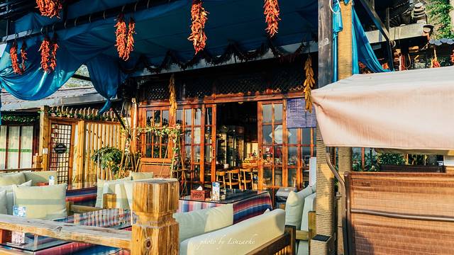 客栈是特立独行的用玻璃为主题构造的,所以说这是我选择他的理由,二楼有酒吧,晚上只有我和伙伴两个人,放着自己喜欢的音乐,品着红酒,畅聊