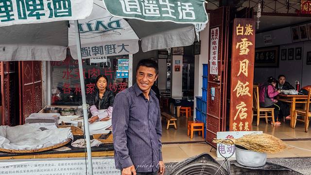 第二天我们一早就去了喜洲,吃了粑粑,很好吃,老板很热情,很配合我拍照,拍粑粑,还反复叮嘱我们,点太多了吃不了呀