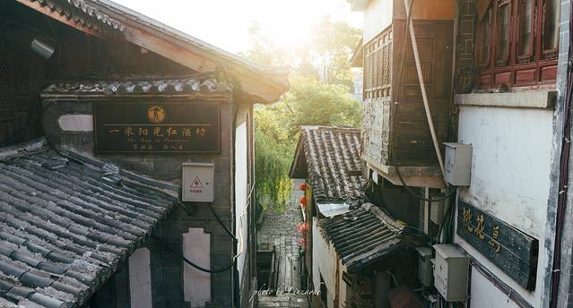 古镇的清晨格外的宁静,和夜晚的嘈杂有着格外的对比,恍若置身于两个世界中,夜晚的丽江,有着与古镇不符的喧闹,像是在发泄什么,清晨的古镇很美,仿佛能找到历史的痕迹,追寻到时间的影子,阳光像湖水一样,涌进里小巷,洗净了青石板路,也妆点了整个古镇。