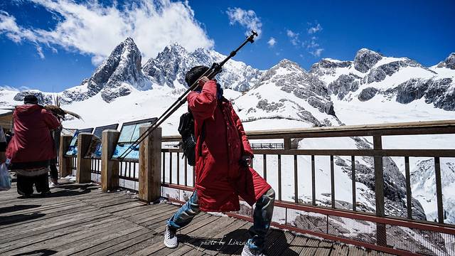 我们第一天是通过去哪定的精品团,就是上雪山和游蓝月谷,大索道会因为大风不开放,可谓一波三折,不过最后排队,等候,等候排队,终于上了雪山,我在下山的时候稍微有一些高原反应,旅行团免费提供羽绒服和便携一次性压缩空气,如果感觉身体不好,可以提前在超市多买几瓶压缩空气,以备不时之需