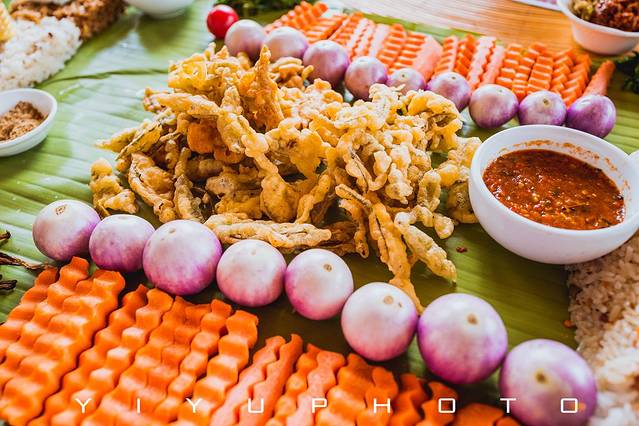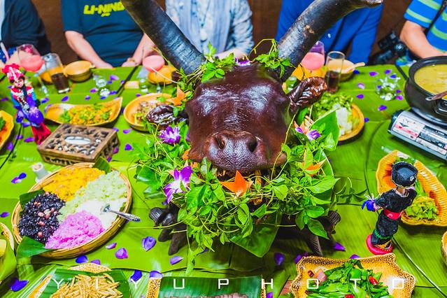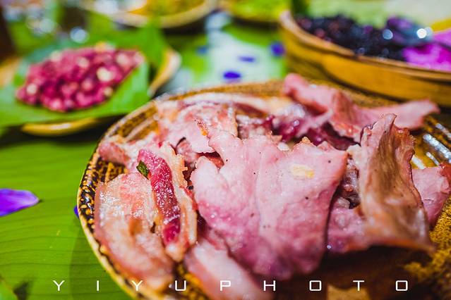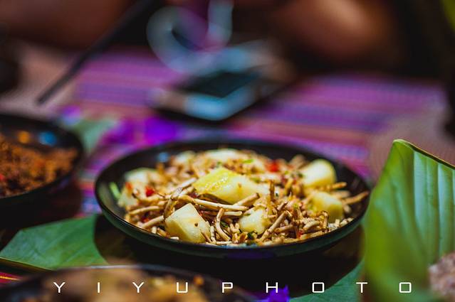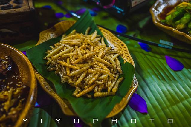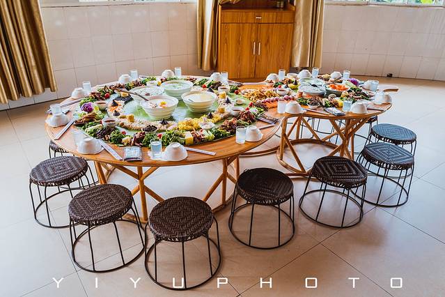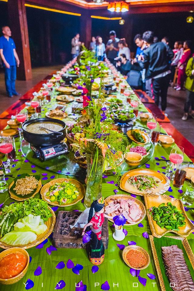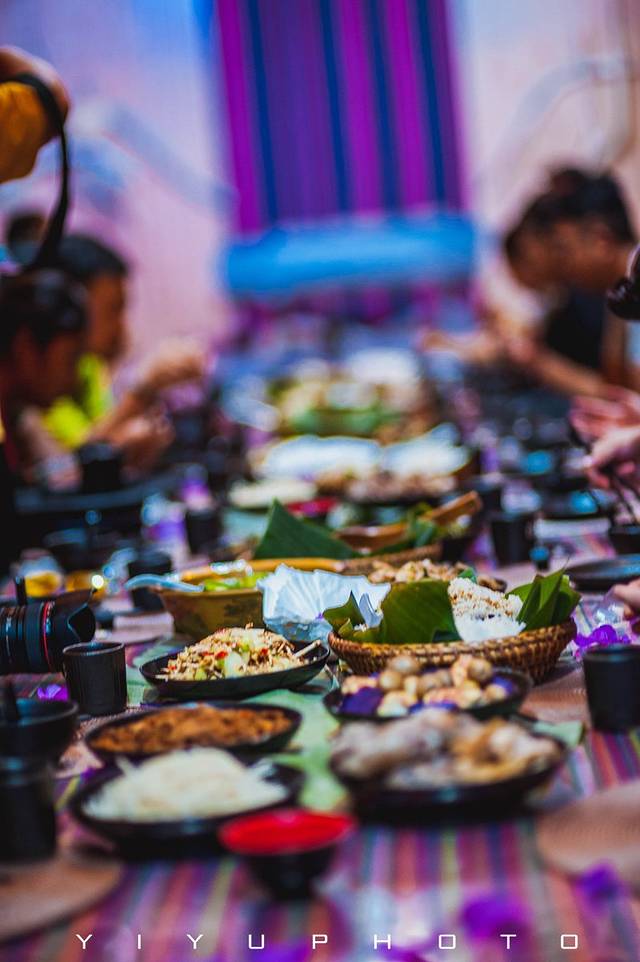 长桌宴除了民族特色之外,还有一个特色就是长了~~好像有点废话哈哈,但真的是很长,摆满了美味佳肴,有野菜有野虫,有水果有鱼肉,各式各样超满足,好好犒劳下穿越后疲惫的身体吧。