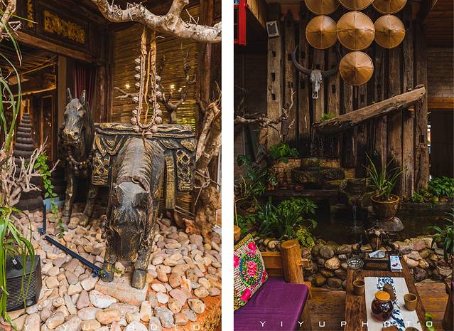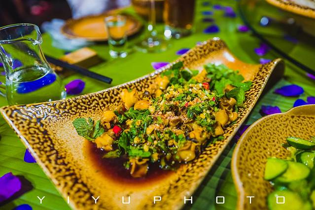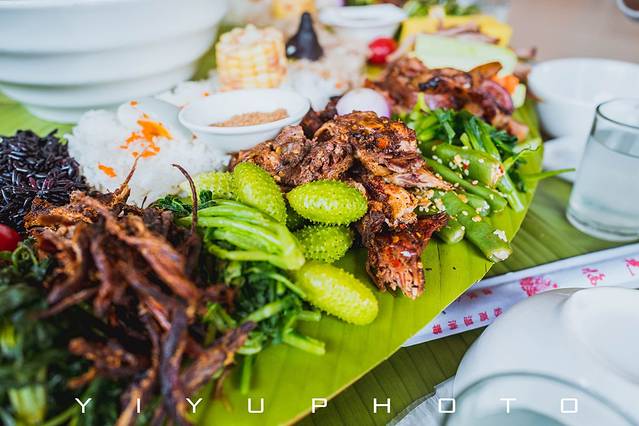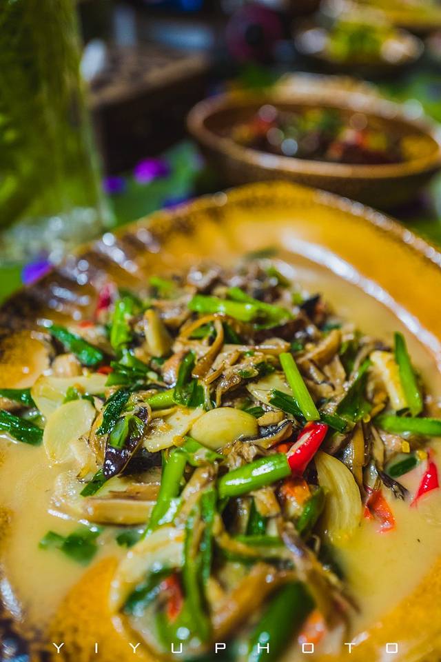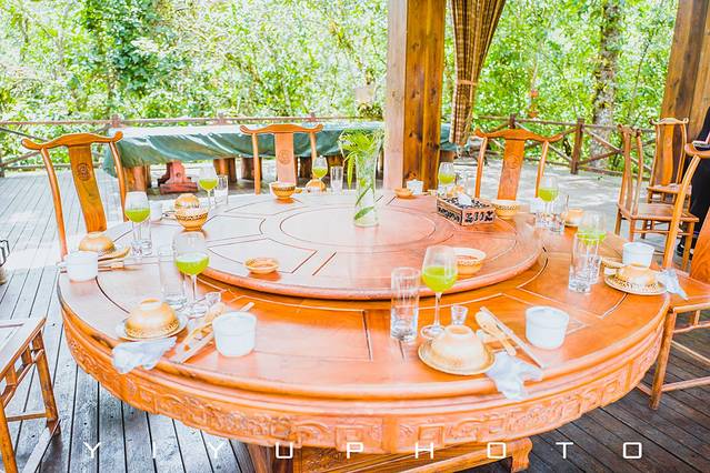这一天,我们要从小熊猫庄园赶往下一站,西盟龙潭,也就是勐梭龙潭,路途略有些遥远,车程大约四个小时,中途在拉祜风情园附近的大葫芦山庄吃了一顿有特色的葫芦宴,其实形式和上一天的三宝宴有些类似,都是琳琅满目的美食大集合,但这里的菜肴要更加野生一点,不认识的食物更多了。