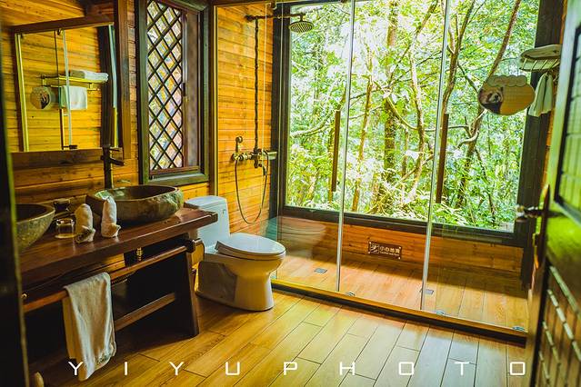房间内部最大的亮点就是这个透明的淋浴间了。一定要记得拉窗帘哦,不然会被小猴纸看光光的!独栋别墅真的很像童话中的小木屋,想想附近都是可爱的小熊猫、梅花鹿满地跑,还有安静的星空银河,这样安逸舒适的享受要是可以长住就好咯。