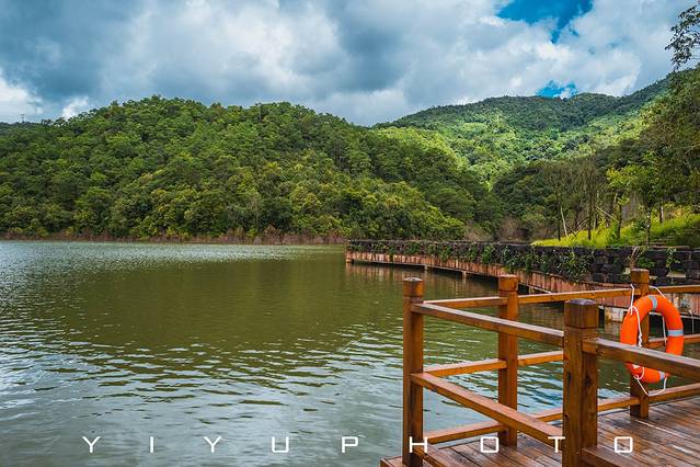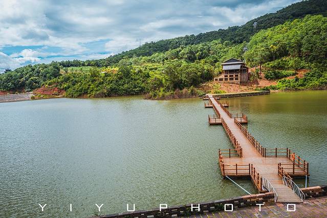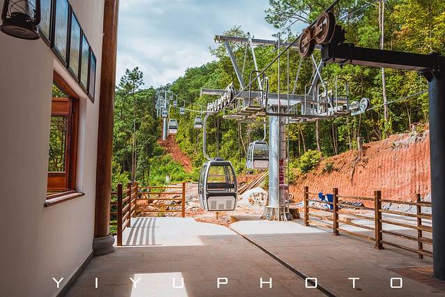 进入景区,一大片湖水浩浩荡荡,高山平湖白云朵朵,不禁有一种“我爱湖山清绝地,抱琴携鹤住茆堂”之感,虽然有些要下雨的征兆,但我们仍坐上缆车,登高游览。