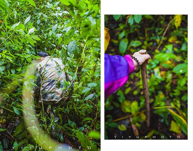 说来轻松,走在丛林里就忍不住想要打道回府,前面的路是要等向导劈开的,上面低矮的树枝很容易撞到头,下面一不留神就会被藤蔓绊倒,跌跌撞撞居然还要过河,溪水冰凉解暑,然而我们根本不敢在这里嬉戏玩耍,生怕天黑之后就走不出去了~~~